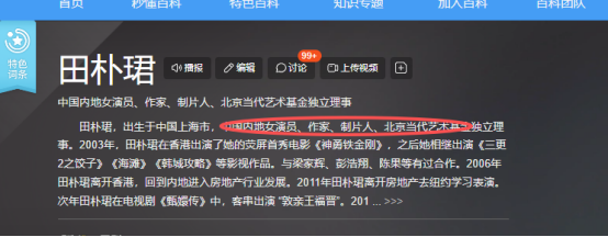 我们先来看看,百度百科是如何介绍田朴珺的。女演员、作家、制片人等等,从这些介绍也能看出,田朴珺和王石在一起后这几年的蜕变。